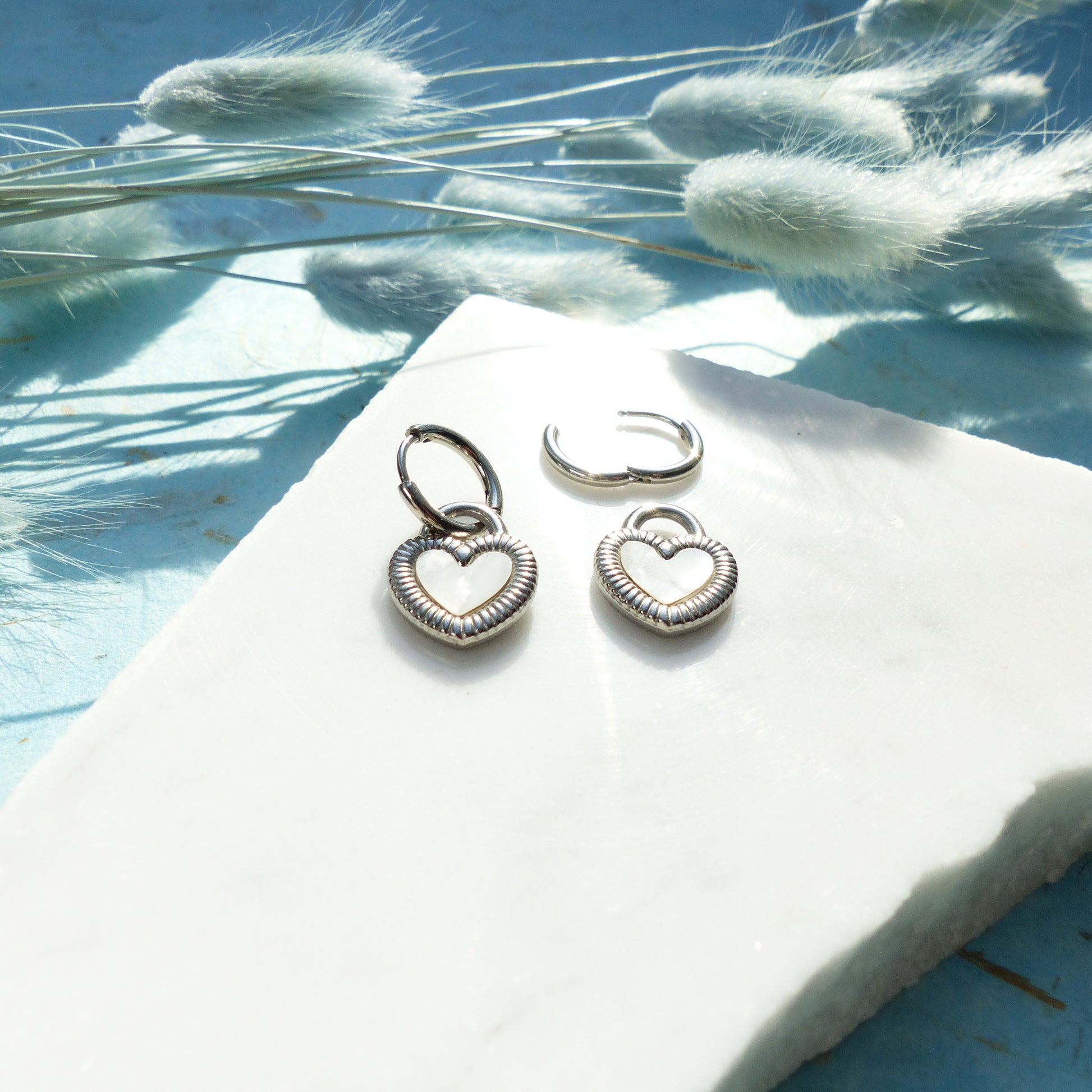 Herzförmige Ohrringe in Gold und Silber mit Wechselseite aus Edelstahl