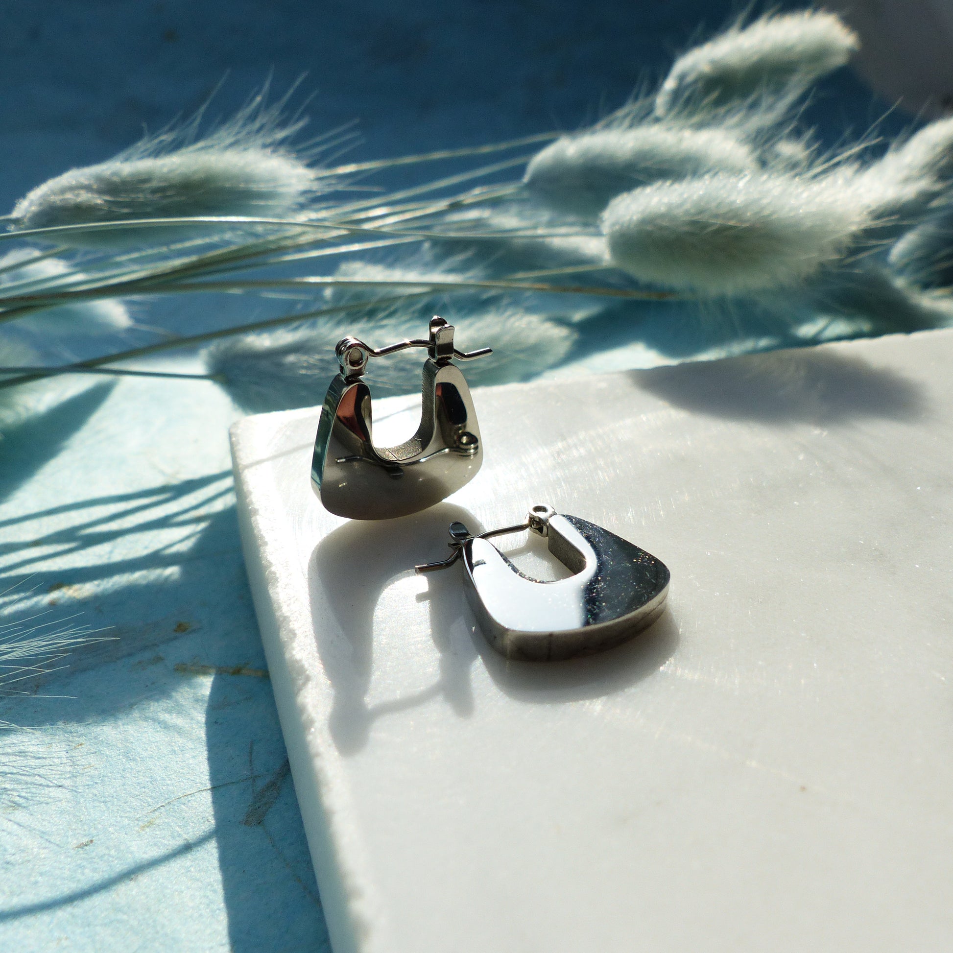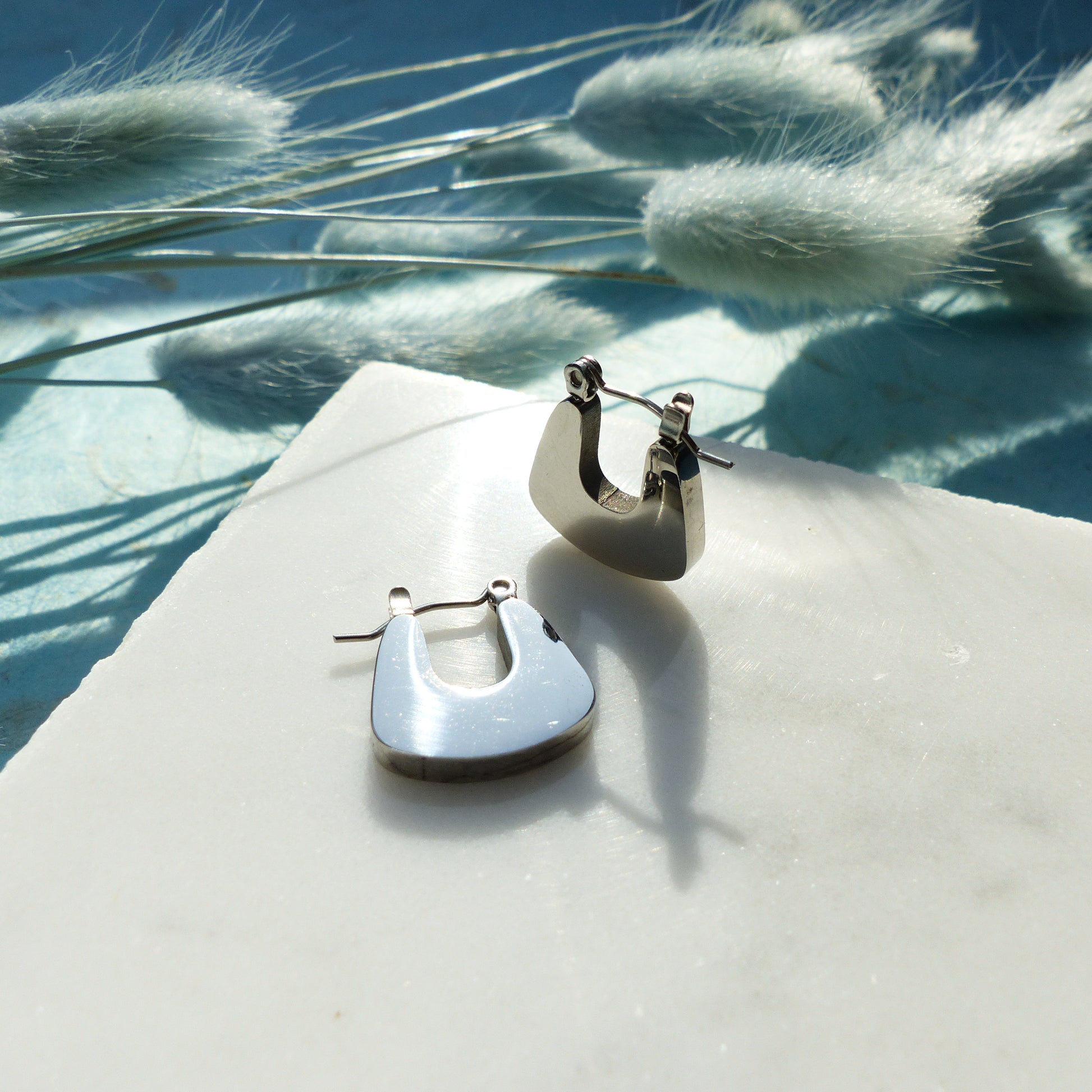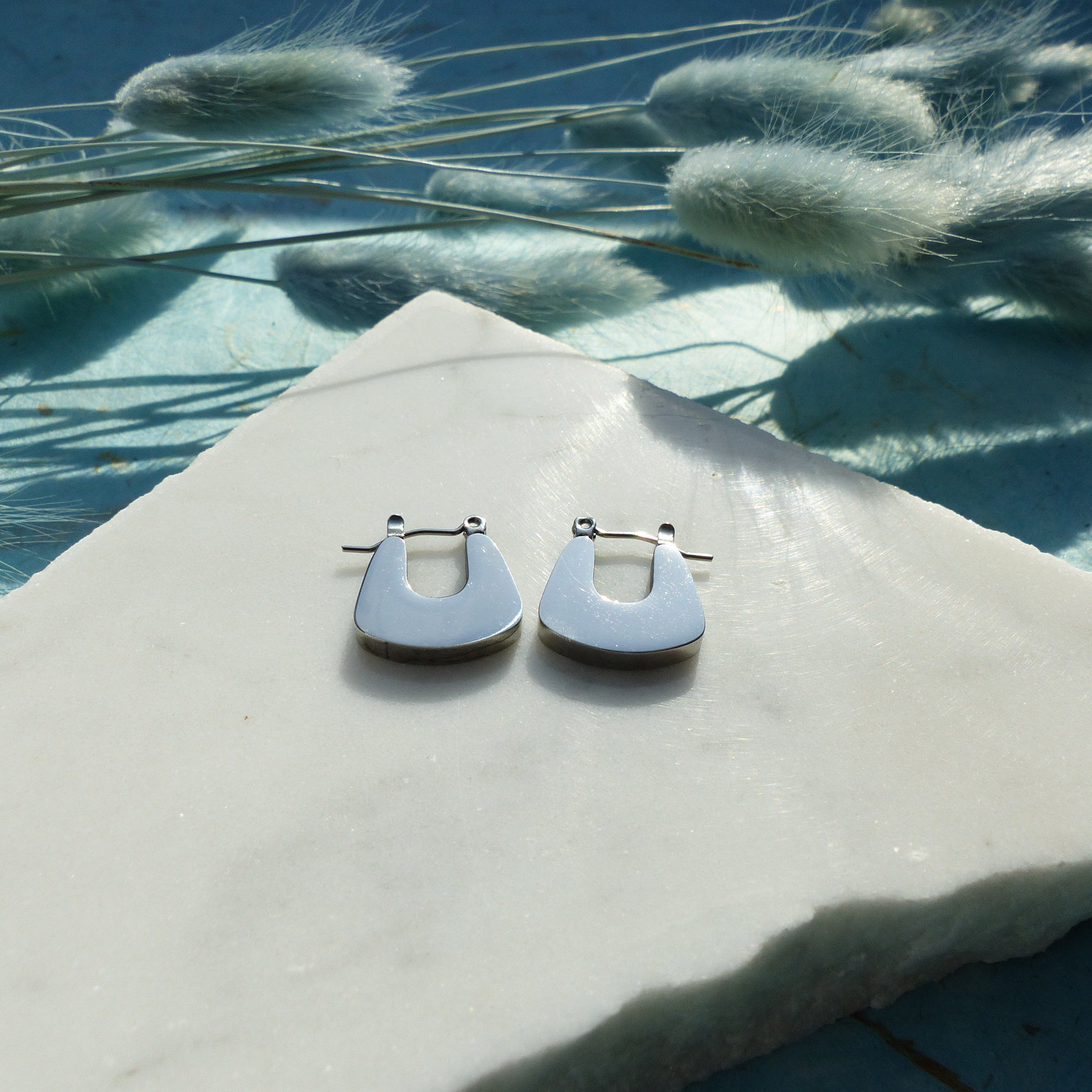Diese kleinen Ohrringe aus Edelstahl machen eine klare Aussage mit ihrem geradlinigen Design. Schlicht und elegant, strahlen sie Souveränität aus – perfekt, um deinen Look mit einem selbstbewussten und schönen Akzent zu vervollständigen. Sie passen zu einem entspannten Tag ebenso wie zu einem wichtigen Termin.