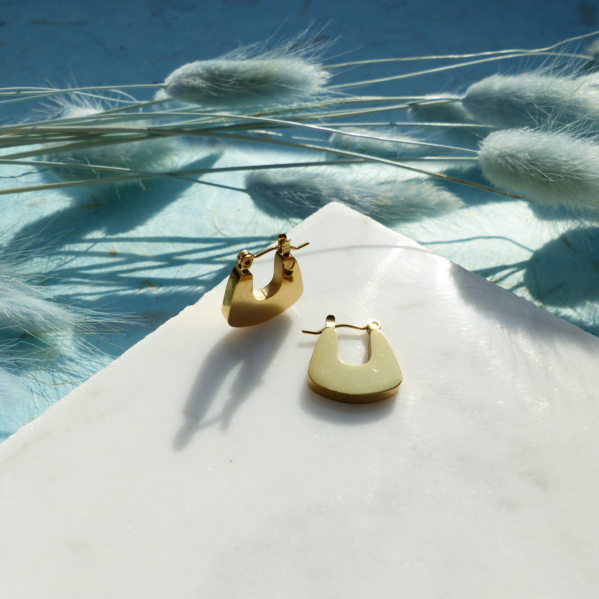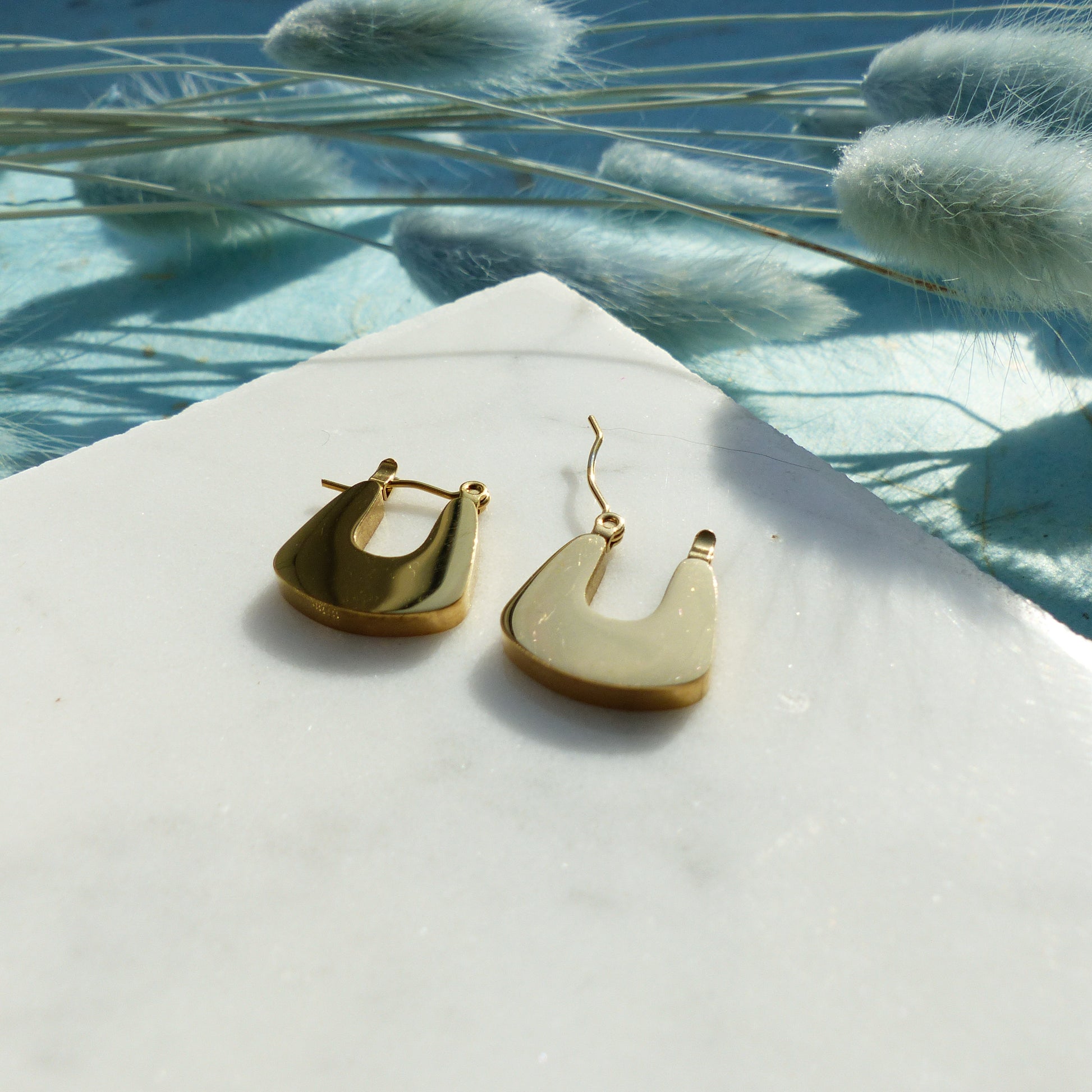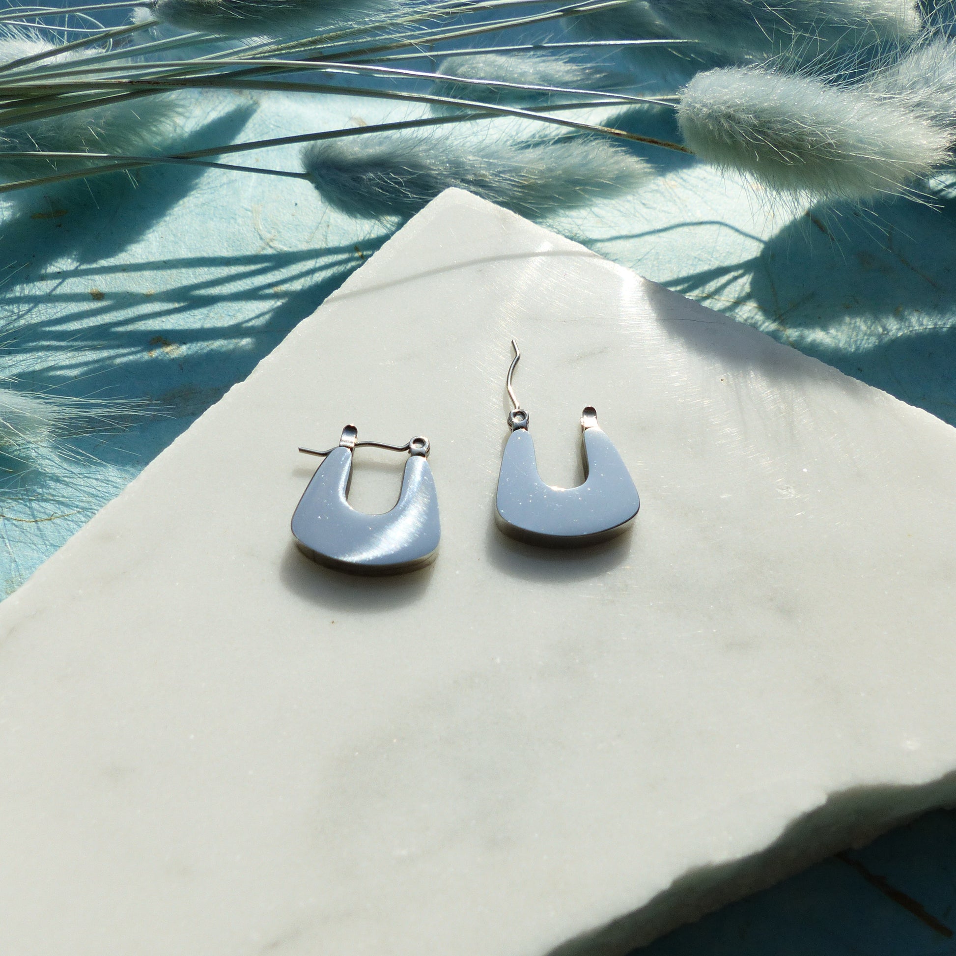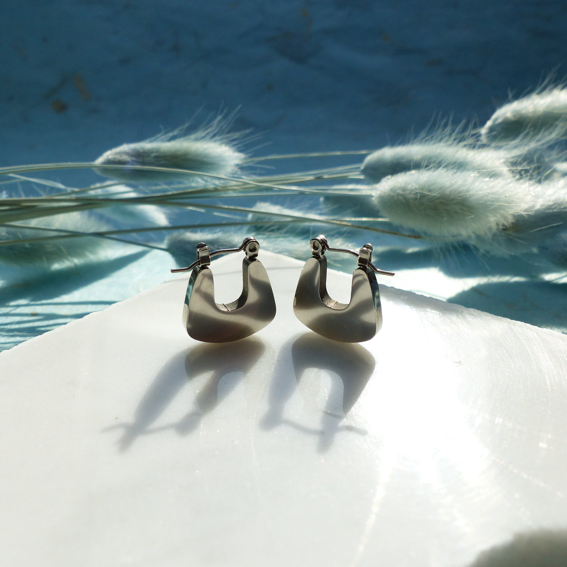 Diese kleinen Ohrringe aus Edelstahl machen eine klare Aussage mit ihrem geradlinigen Design. Schlicht und elegant, strahlen sie Souveränität aus – perfekt, um deinen Look mit einem selbstbewussten und schönen Akzent zu vervollständigen. Sie passen zu einem entspannten Tag ebenso wie zu einem wichtigen Termin.