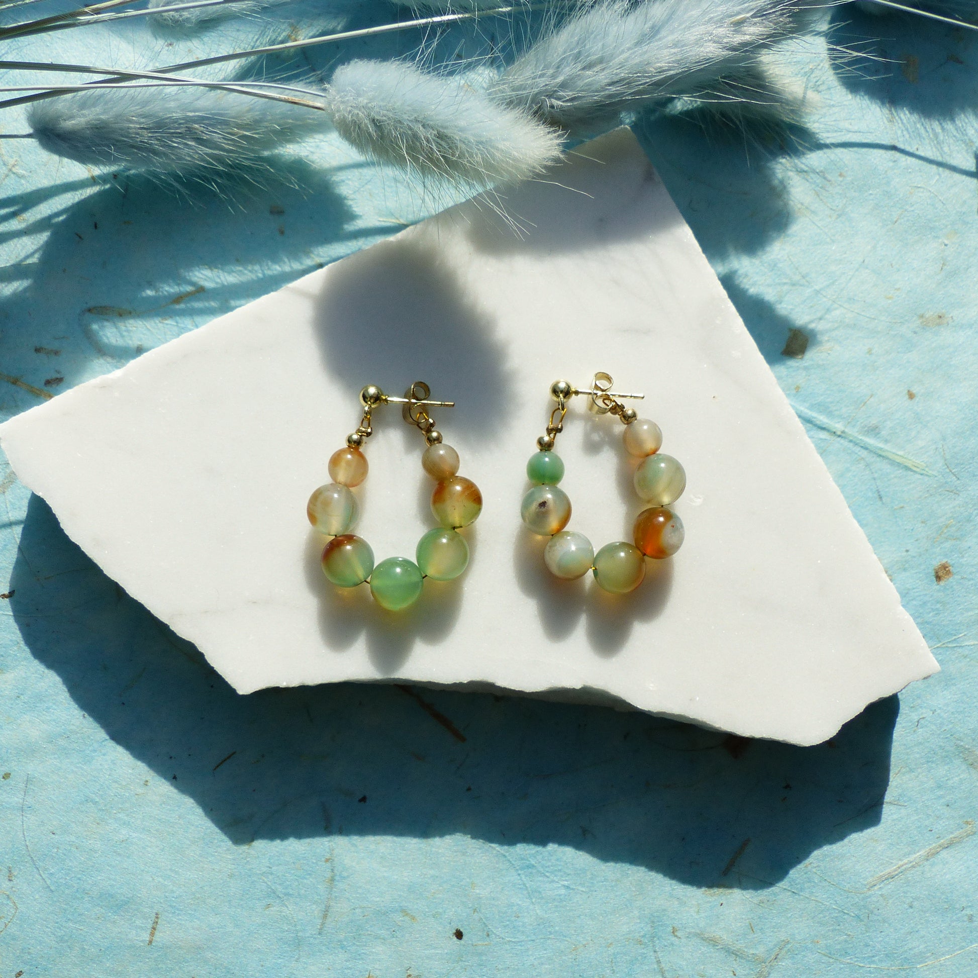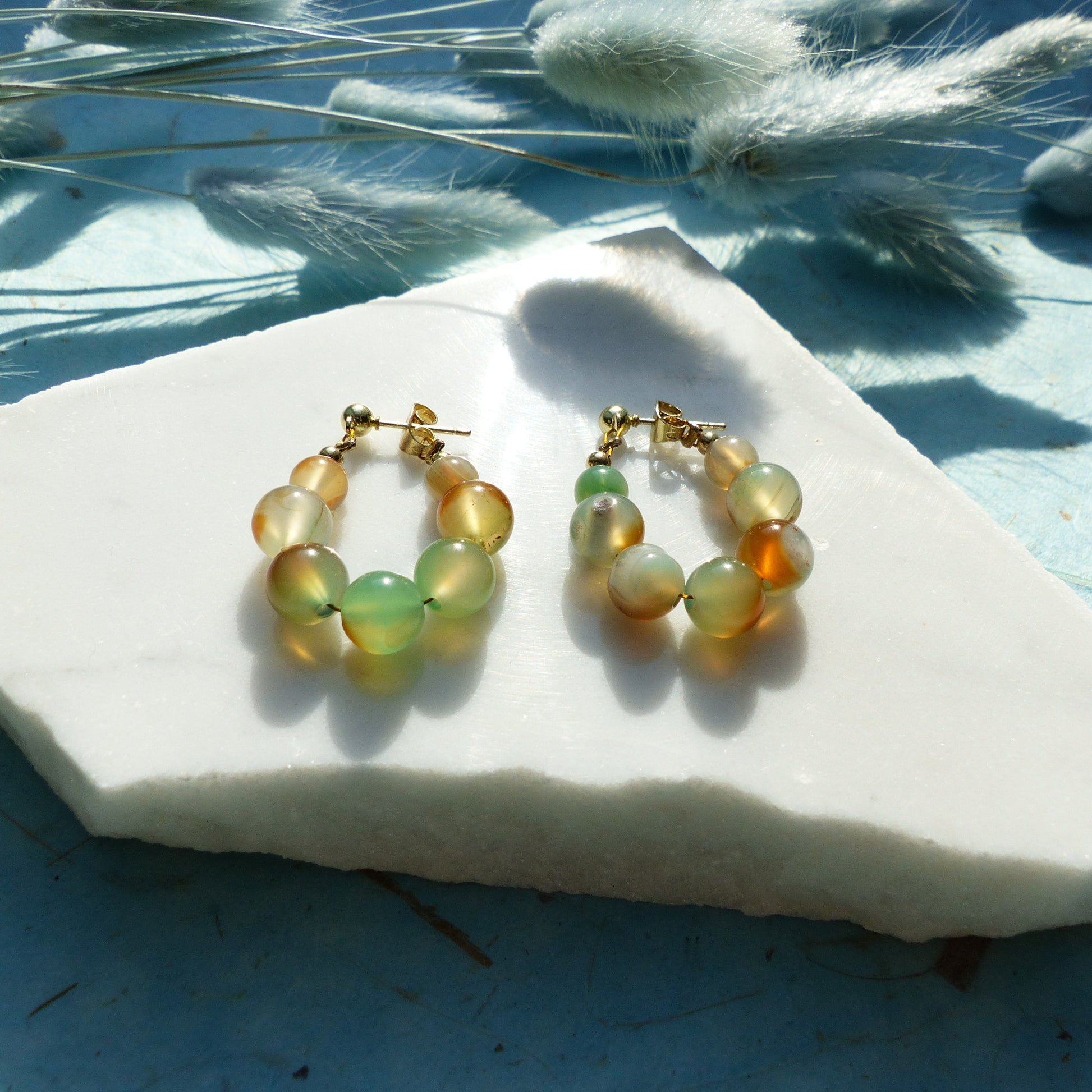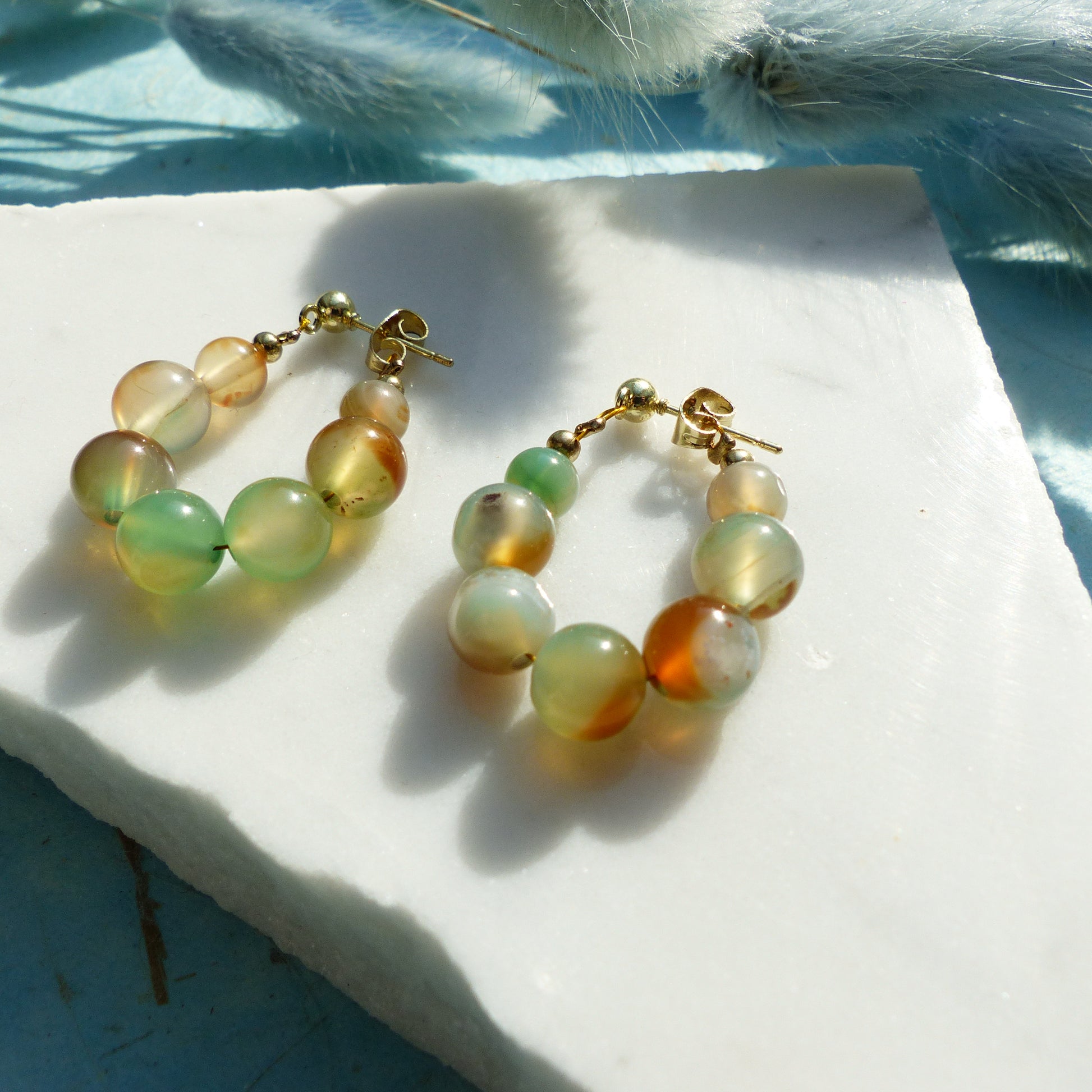 Ohrringe mit Achatperlen und Edelstahlsteckern