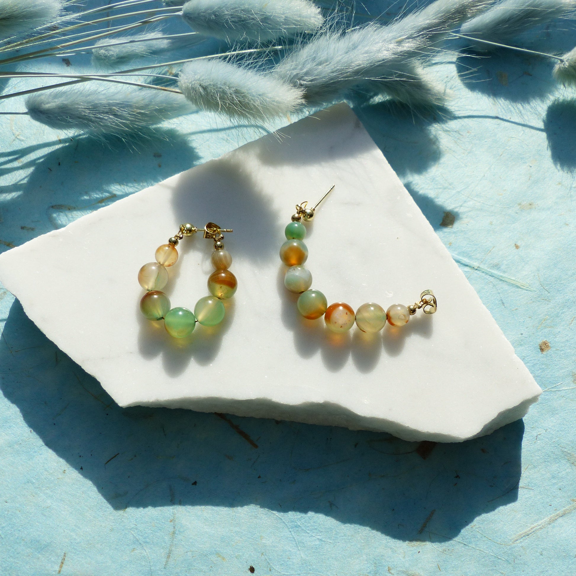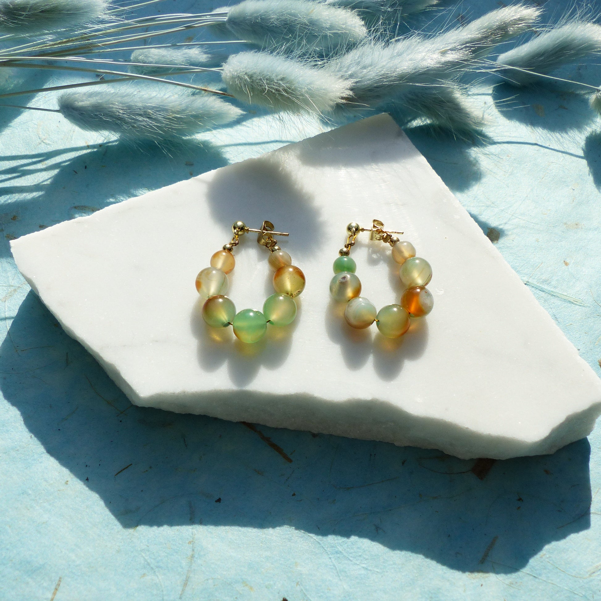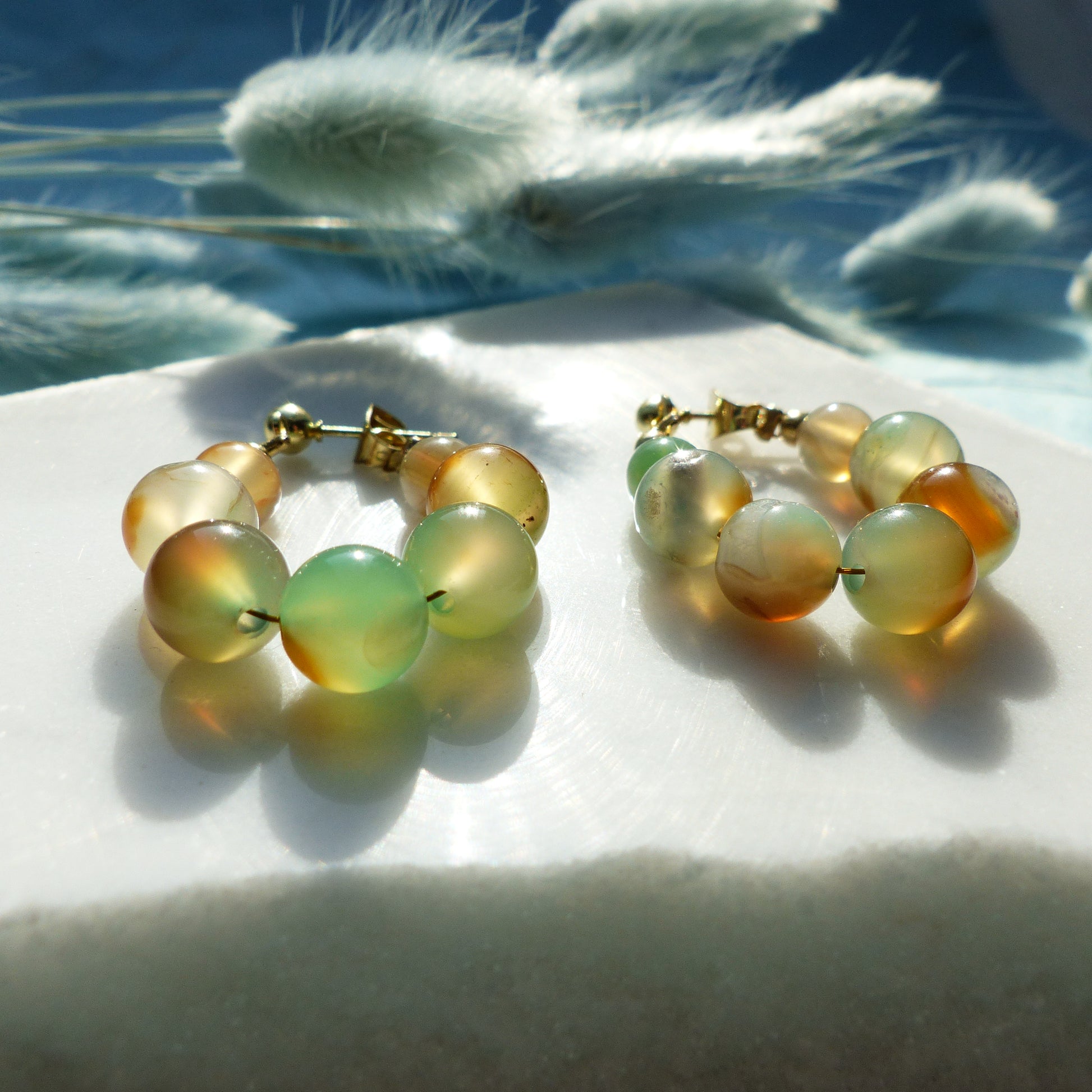 Ohrringe mit Achatperlen und Edelstahlsteckern
