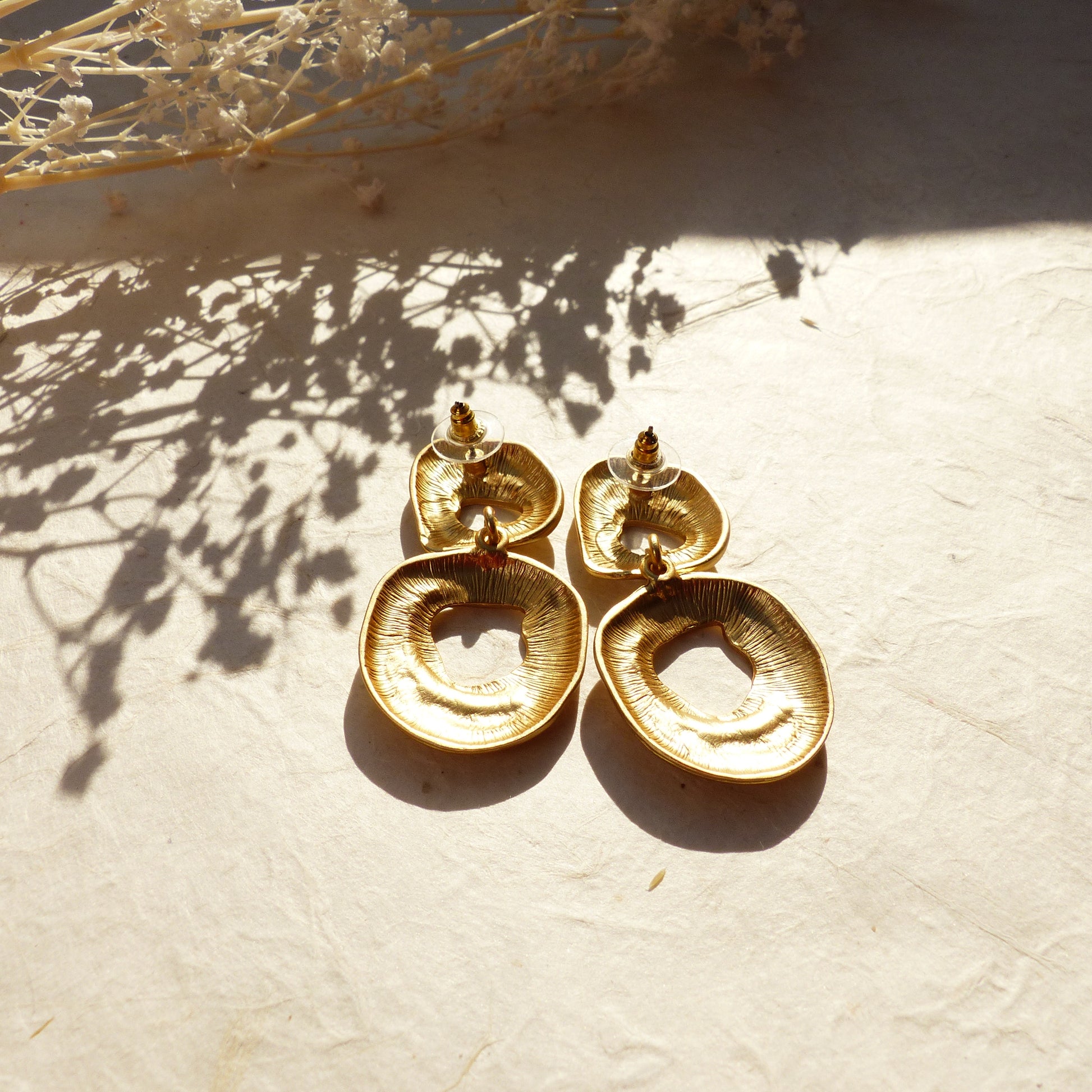 Diese schönen Ohrringe vereinen moderne Formensprache mit klassischem Gold. Die geschwungenen Linien und die raffinierte Textur verleihen jedem Outfit einen Hauch von luxuriöser Raffinesse. Ein Statement-Piece für die selbstbewusste Frau.